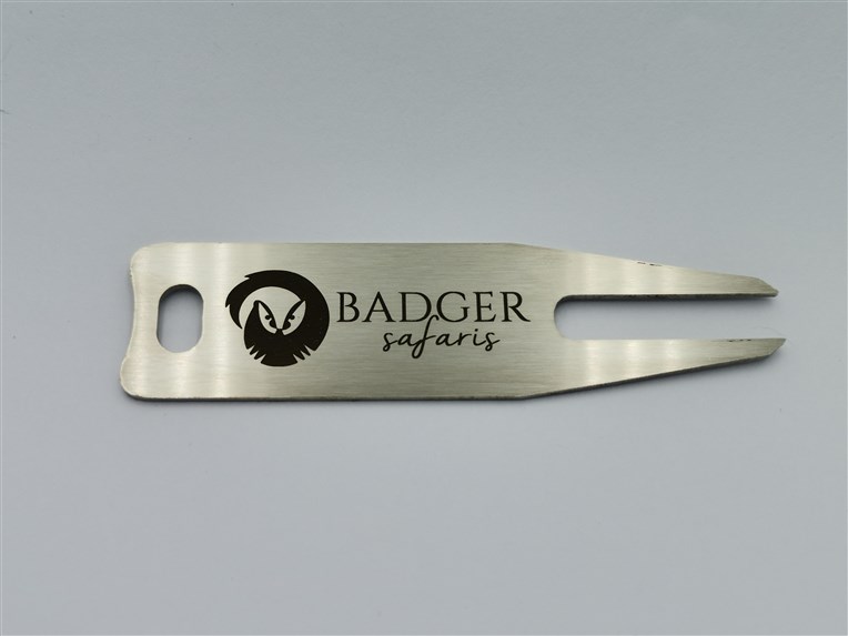 Stainless steel engraved pitchmark repair tool. Can be engraved on one side, or both sides with your custom logo, quote or other details.